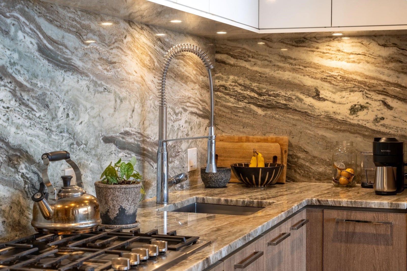 Take in expansive mountain views from this 2-bed, 2-bath corner home at Compass. The modern kitchen feats. upgrades such as seamless granite quartz backsplash/countertops & Bosch appliances w/ gas cooktop, plus island with seating, flowing into the living area with floor-to-ceiling 3-ply windows that fill the space with natural light, & hardwood floors (upgrade) throughout. Two airy bedrooms both have WIC’s & separation offers privacy. The covered balcony w/ gas hookup is ideal for outdoor dining. Highlights include in-suite laundry, one parking, bike & storage lockers, A/C, concierge, guest suite, party rooms & access to the amenities centre w/ indoor pool, hot tub, sauna, steam room & fitness facility. Pet-friendly. Ideally located just minutes to trails and everyday conveniences.